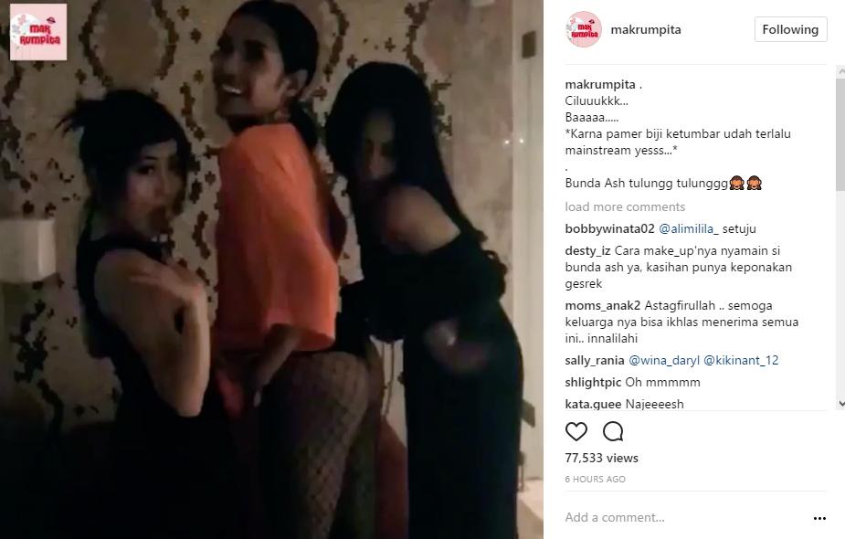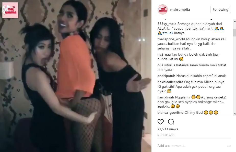 Seperti biasa, sepupu Aurel Hermansyah itu pun berpakaian dan berdandan layaknya wanita. Netizen pun sempat dibuat syok saat tiba-tiba Millen membuka roknya dan menampilkan bagian pantatnya yang tertutup stoking hitam dengan aksen jaring-jaring. Dua teman wanitanya bahkan terlihat memukul pantat Millen tanpa ada rasa sungkan sedikitpun.