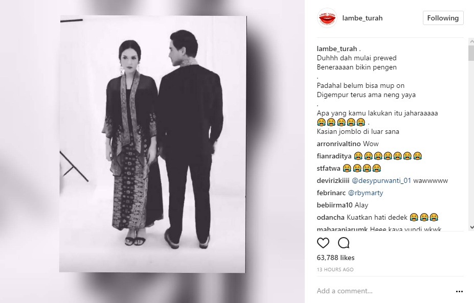 Kabar tersebut diketahui melalui postingan akun gosip @lambe_turah."Duhhh dah mulai prewed. Beneraaaan bikin pengen. Padahal belum bisa mup on. Digempur terus ama neng yaya," tulis akun tersebut dalam caption postingannya, Minggu, 25 Juni.