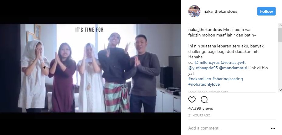 Bersama sang kekasih, Kana, dan beberapa teman lainnya, mereka pun ikut bersuka cita dalam menyambut lebaran. Mereka juga membuat video khusus untuk memberi ucapan selamat lebaran yang diunggah di akun Instagram Kana.