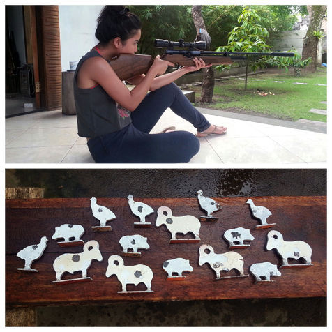 Model majalah dewasa Baby Margaretha justru makin seksi ketika olahraga menembak seperti ini.