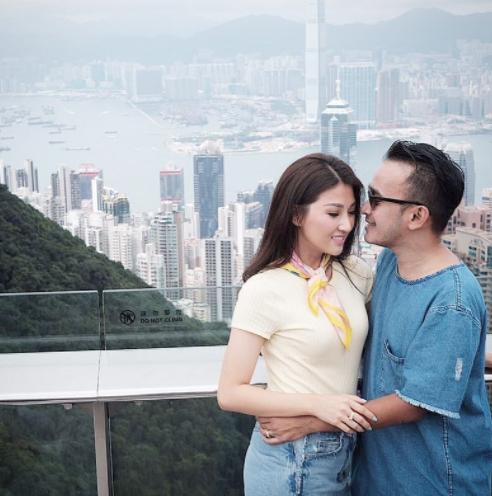 Berlatar belakang pemandangan kota Hongkong yang cantik, Ruben mencuri waktu untuk berduaan dengan sang istri.