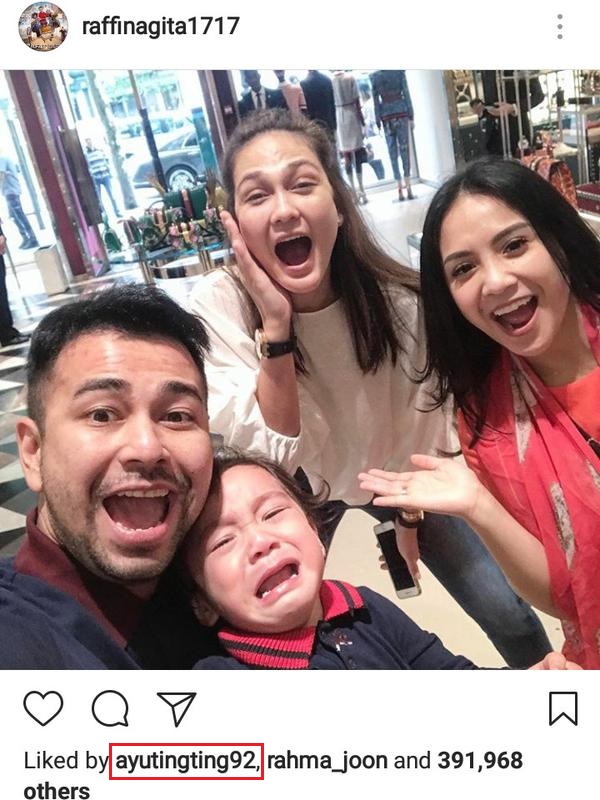Meskipun destinasi liburan berbeda, rupanya Ayu disebut ingin mengetahui aktivitas Raffi selama liburan. Hal ini diketahui usai Ayu menyukai postingan Raffi saat foto bersama Luna Maya.