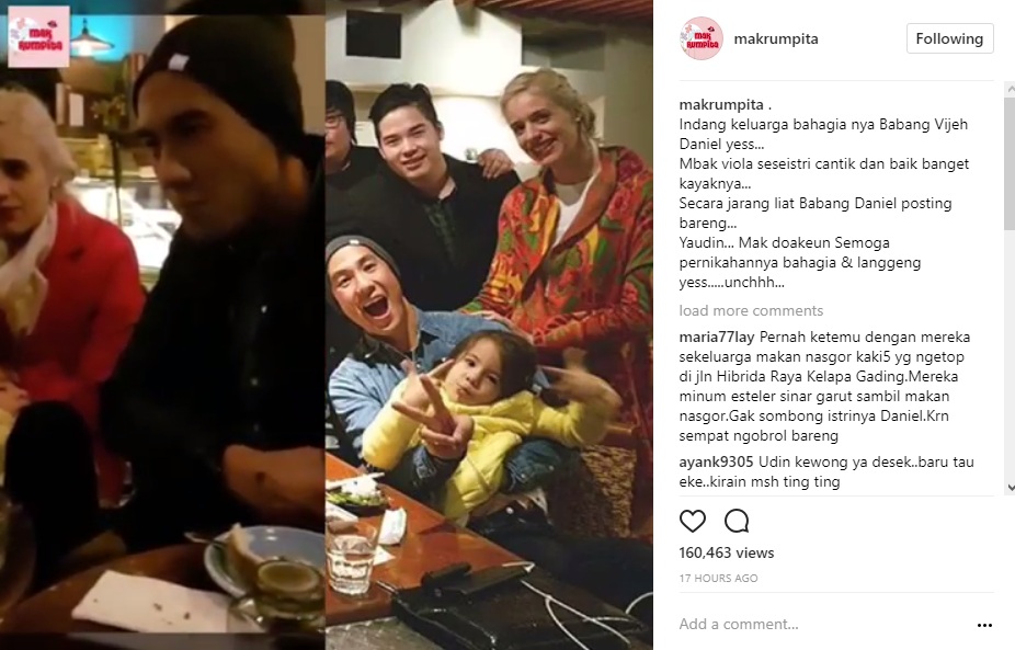 Melalui postingan istri Mario Teguh, Linna Teguh, yang diuggah ulang oleh akun gosip @makrumpita, Daniel terlihat memangku sang putri. Viola pun tampak berada di belakang Daniel.