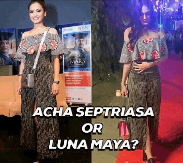 Acha dan Luna sempat mengenakan busana yang sama lho. Tapi keduanya sama cantiknya bukan?
