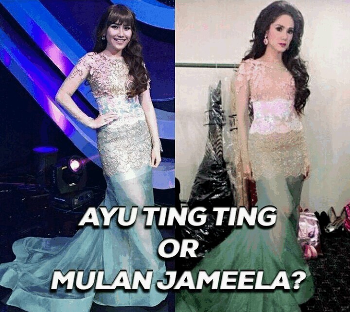 Lagi-lagi Ayu Ting Ting ketauan mengenakan baju yang sama, kali ini dengan istri Ahmad Dhani, Mulan Jameela.