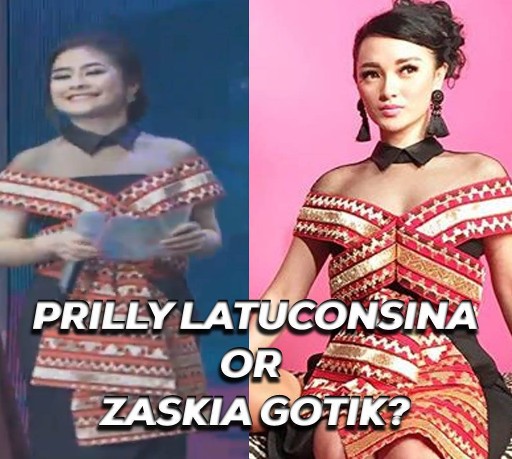 Kali ini Zaskia Gotik yang bajunya ketahuan kembaran lagi. Kali ini dengan Prilly Latuconsina.