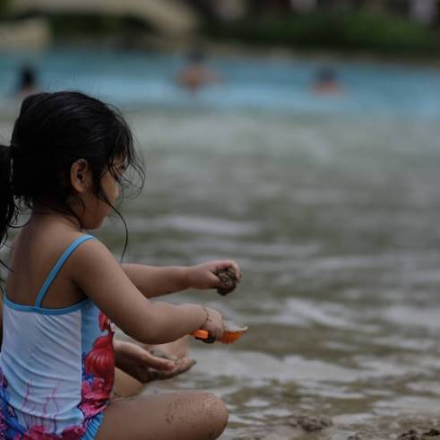 Ia juga sempat membangun istana pasir dengan anak keduanya, Ishana.