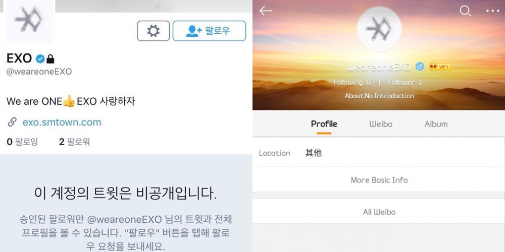 Mengenai akun Twitter tersebut, beberapa fans menyebutkan bahwa awalnya akun itu menggunakan nama "EXO", tapi segera diubah tak lama kemudian. Selain itu, pada saat yang sama, rupanya muncul pula akun Weibo resmi dengan nama ID yang sama dengan akun Twitter resmi EXO tersebut.