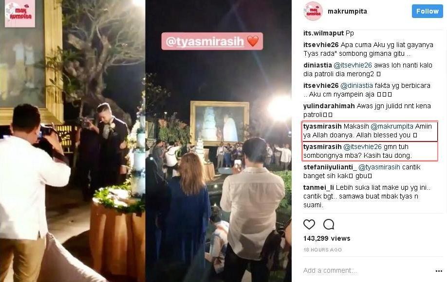 Tak sampai disitu, Tyas pun semakin kepo dengan akun gosip lainnya. Artis 30 tahun itu kembali membalas komentar pedas netizen yang menyebutnya sombong. "gmn tuh sombongnya mba? Kasih tau dong," balas Tyas melalui kolom komentar akun @makrumpita.