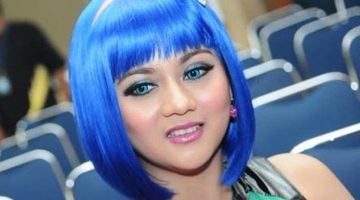 Selama ini Jenita Janet moncer berkat rambut palsunya yang berwarna-warni.