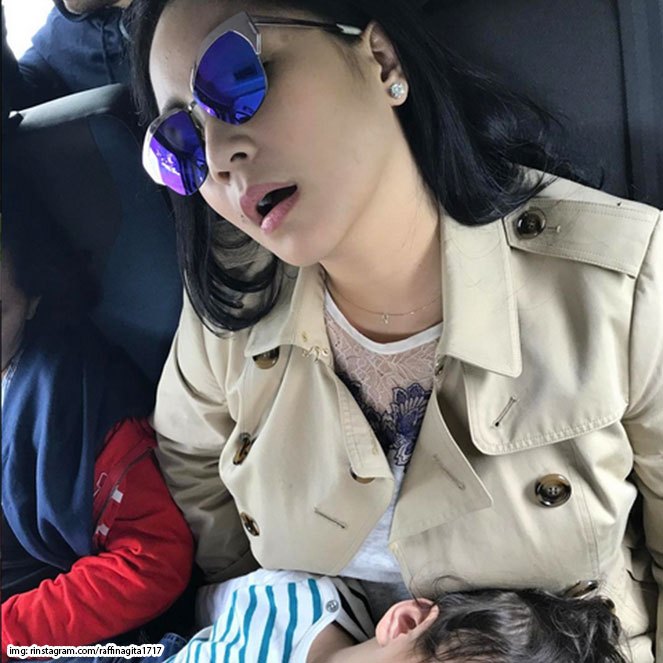Istri Raffi Ahmad, Nagita Slavina tetap saja terlihat cetar meskipun sedang tidur dengan kondisi mulut terbuka. Foto ini sengaja diunggah Raffi melalui Instagram mereka @raffinagita1717.