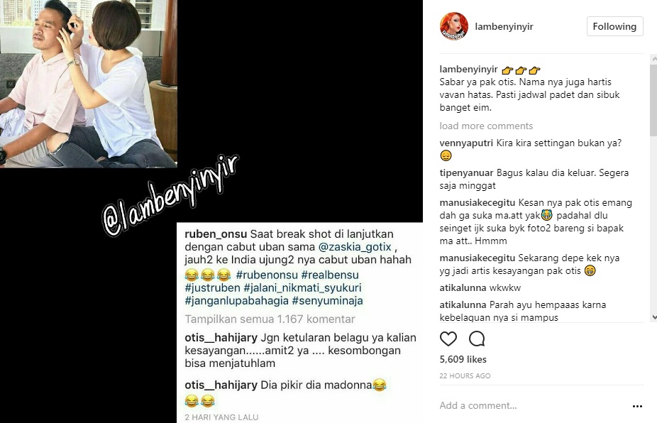 Tak hanya itu, Otis nampaknya juga dianggap menyindir Ayu melalui kolom komentar Instagram Ruben Onsu. Otis pun meminta Ruben untuk tidak menjadi seorang selebritis yang sombong.