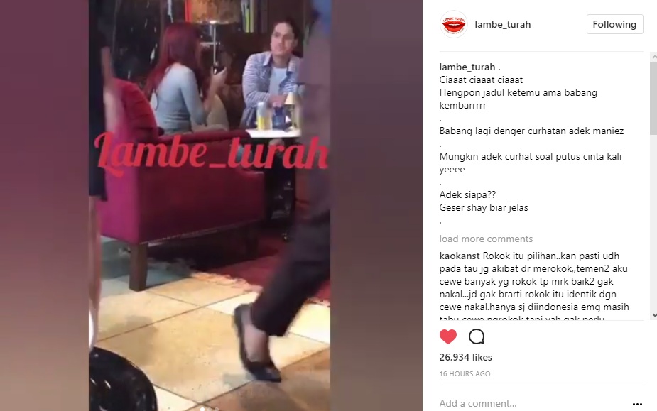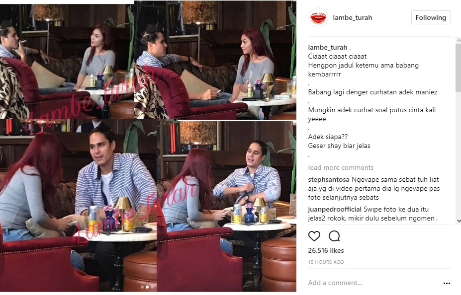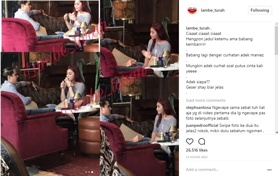 Akun gosip @lambe_turah pun menduga obrolan keduanya tentang hubungan asmara Ariel dan Ryuji. "Babang lagi denger curhatan adek maniez Mungkin adek curhat soal putus cinta kali yeeee," tulis akun tersebut dalam caption postingannya.