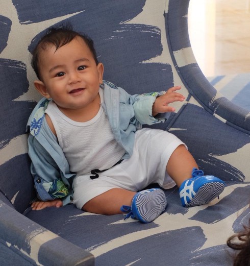 Meskipun baru 7 bulan namun Meisya Siregar nampaknya sudah mengajari Baby Bambang cara berpakaian yang kece ya?