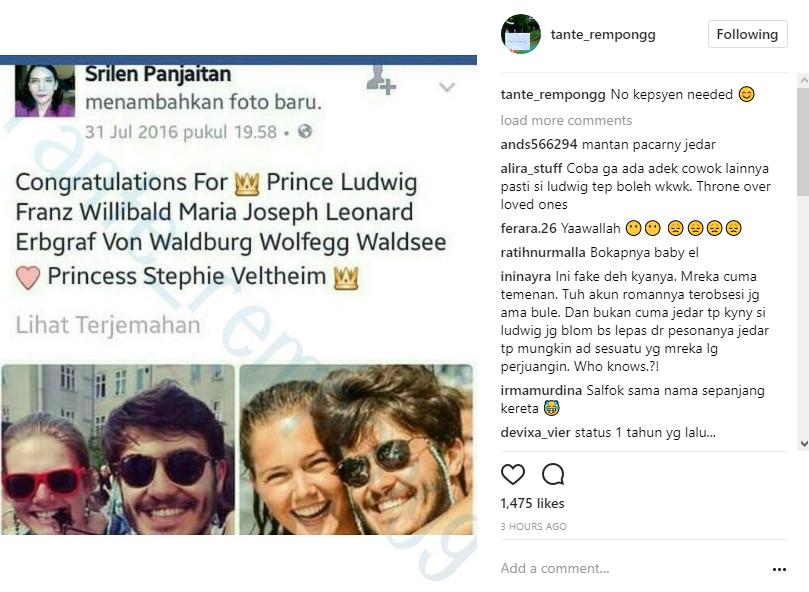 Melalui postingan seorang netizen yang diunggah ulang oleh akun gosip @tante_rempongg, kabar tersebut membuat netizen heboh. Pasalnya, postingan tersebut menampilkan kedekatan Ludwig dengan seorang wanita bangsawan. "Congratulatian For Prince Ludwig Franz Willibald Maria Joseph Leonard Erbgraf Von Waldburg Wolfegg Waldsee Princess Stephie Veltheim," tulis netizen dalam postingannya.