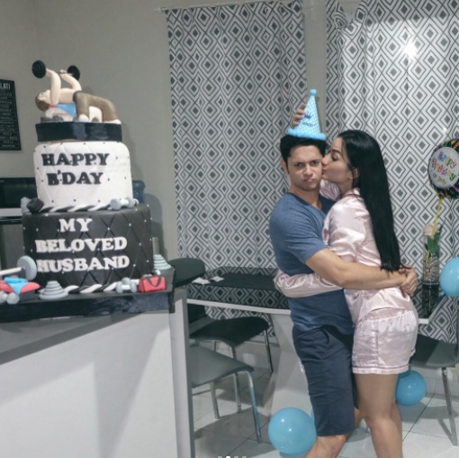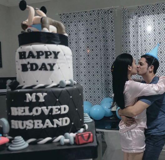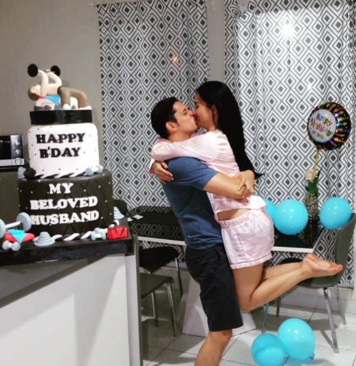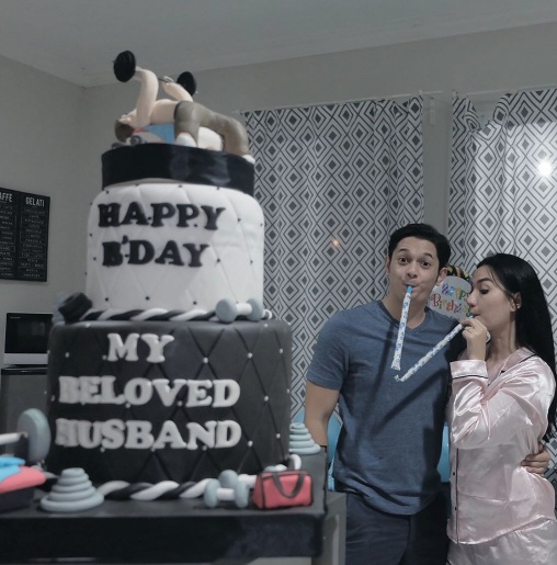 Sambil mengenakan pakaian santai keduanya merayakan hari bahagia itu dengan penuh kasih sayang.