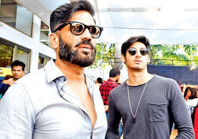 Jangan tertukar ya, Aahan Shetty yang menggunakan kaos berwarna abu-abu. Yap, Aahan Shetty adalah anak dari aktor Sunil Shetty yang juga terjun ke dunia hiburan. Aahan bisa berakting dan juga bermain musik lho.