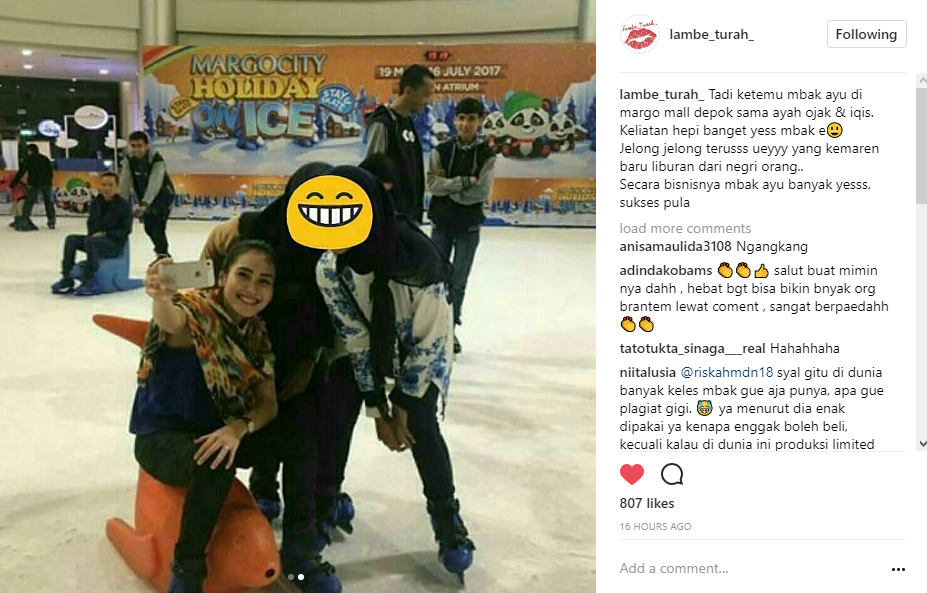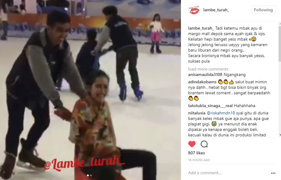 Seperti belum lama ini, salah satu akun gosip @lambe_turah_ mengaku bertemu Ayu Ting Ting tengah berada di salah satu mall bersama sang ayah dan anaknya. "Tadi ketemu mbak ayu di margo mall depok sama ayah ojak & iqis. Keliatan hepi banget yess mbak e," tulis akun tersebut dalam caption postingannya.