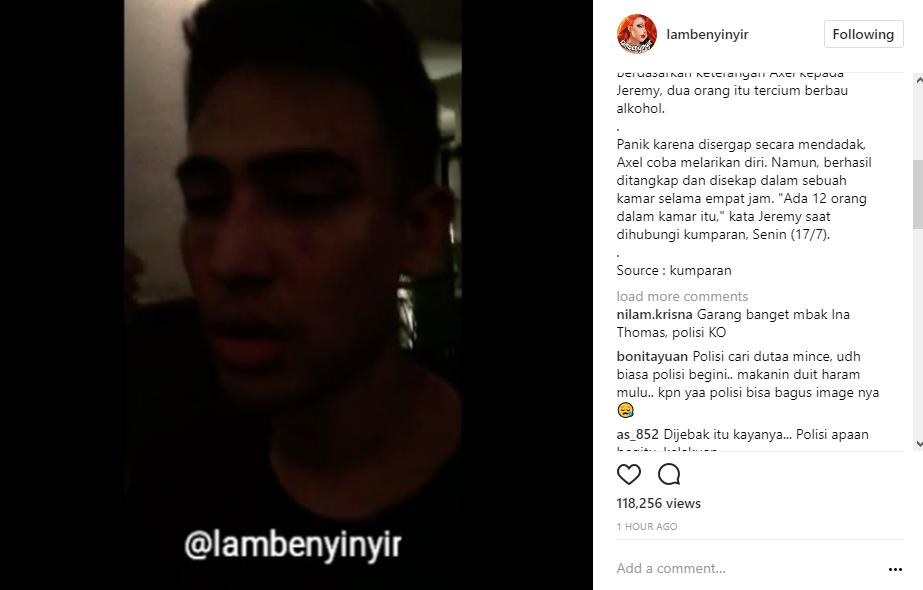 Melihat Axel dalam kondisi babak belur, istri Jeremy Thomas, Ina Indayanti menjadi syok. Hal ini diketahui melalui postingan akun @lambenyinyir. Bahkan, ia meluapkan kemarahannya pada para oknum polisi.