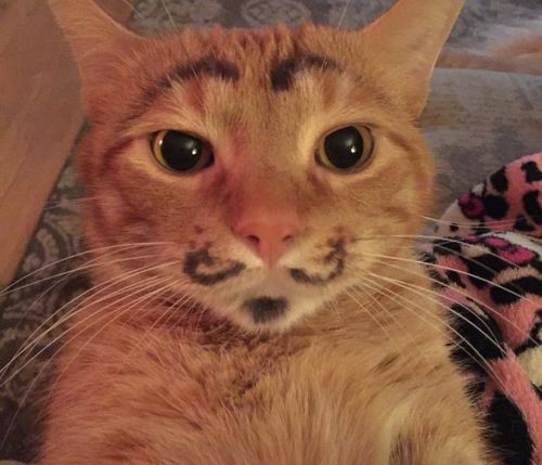 Di saat anak-anak terlalu tenang di kamar lain yang tidak diawasi, hal seperti ini bisa terjadi. Merias wajah kucing dengan kumis dan alis.