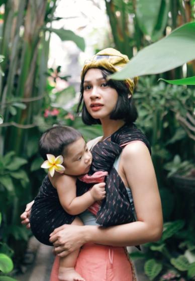 Berada dalam gendongan ibunya, Kawa menikmati suasana hijau kawasan Canggu Bali. Ia makin menggemaskan dengan bunga yang disematkan di telinganya, duh gemas!