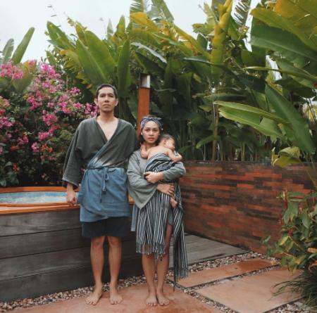 Sambil menggendong Kawa, Andien dan Ippe tak lupa mengambil beberapa foto aesthetic sebagai dokumentasi perjalanan liburan mereka saat di Bali.