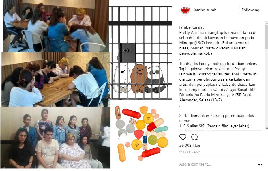 Sementara itu, netizen menyayangkan atas tertangkapnya sejumlah artis yang tertangkap atas kasus narkoba. "tragis," kata netizen melalui kolom komentar @lambe_turah. "Perawan Perawan putus asa .Kebanyakan main ke klub malam Jarang Tadarus," kata lainnya. "Astaqfirullah,... Masuk buih berjamaah deh," timpal lainnya.