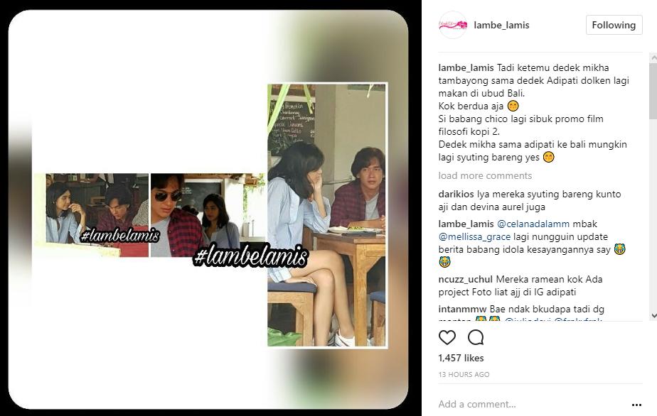 Bukan menjalani hubungan, netizen menyebut Mikha dan Adipati Dolken memang terlibat dalam pekerjaan yang sama. "Lg syuting mreka. Ada di storynya mikha juga," kata netizen. "Iya mereka syuting bareng kunto aji dan devina aurel juga," timpal lainnya.