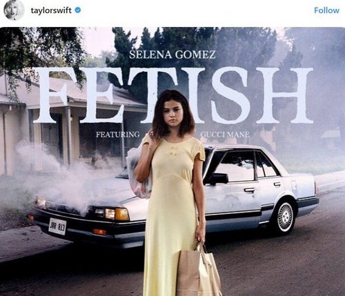 Taylor Swift tampak begitu menyayangi sahabatnya, Selena Gomez. Ia pernah kembali ke Instagram setelah satu bulan menghilang demi mengunggah foto Selena Gomez yang merilis lagu baru berjudul "Fetish". Saat itu Taylor Swift memang memilih undur diri dari media sejenak, setelah hubungannya dengan Tom Hiddleston bubar.