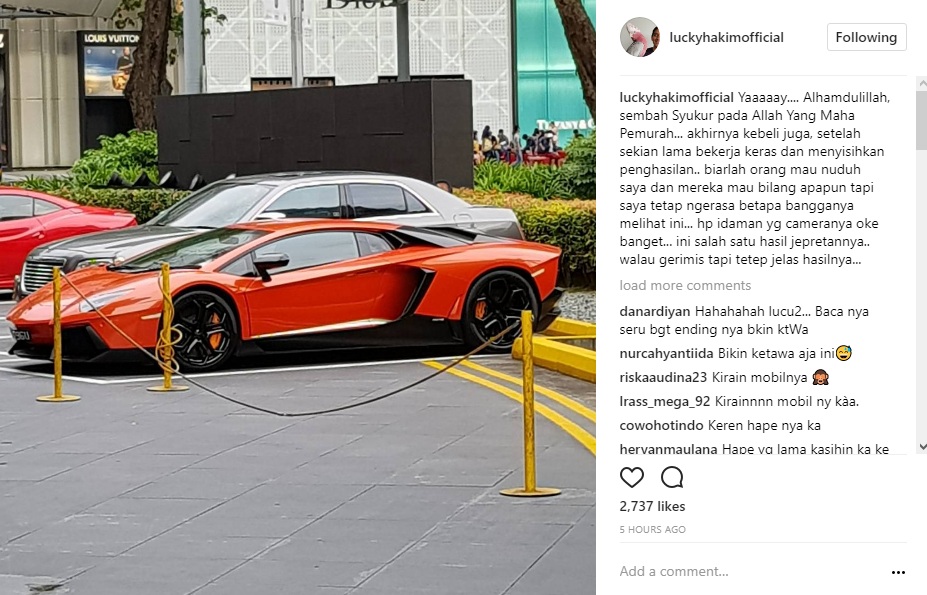 Di sisi lain, Lucky Hakim tetap terlihat tak mempunyai masalah. Bahkan, ia disebut telah membeli mobil mewah seharga milyaran rupiah. Melalui postingan di akun Instagram pribadinya, Lucky pun membagikan foto mobil mewah tersebut.