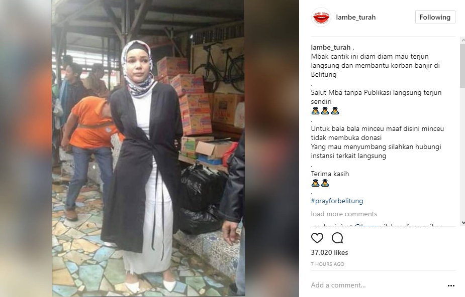 Saat bencana itu terjadi, tak disangka sosok selebritis Dewi Sandra ikut terjun langsung ke daerah pengungsian. Kabar tersebut diketahui melalui postingan akun @lambe_turah. "Mbak cantik ini diam diam mau terjun langsung dan membantu korban banjir di Belitung," tulis akun tersebut dalam caption postingannya.