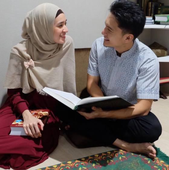 Namun kegiatan mereka nggak cuma pamer pacaran halal tapi baik Dimas Seto maupun Dhini Aminarti juga kompak dalam beribadah, salah satunya adalah baca Al Quran bareng.