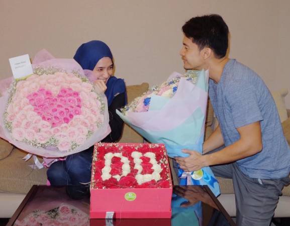 Waktu ulang tahun Dhini Aminarti ke 34 tahun pada Mei lalu, Dimas Seto mengirimkan tiga buket besar bunga untuk istrinya lho. Sebagai hadiah ulang tahun sekaligus permintaan maaf lantaran nggak bisa merayakan bareng karena harus syuting. Romantis banget!