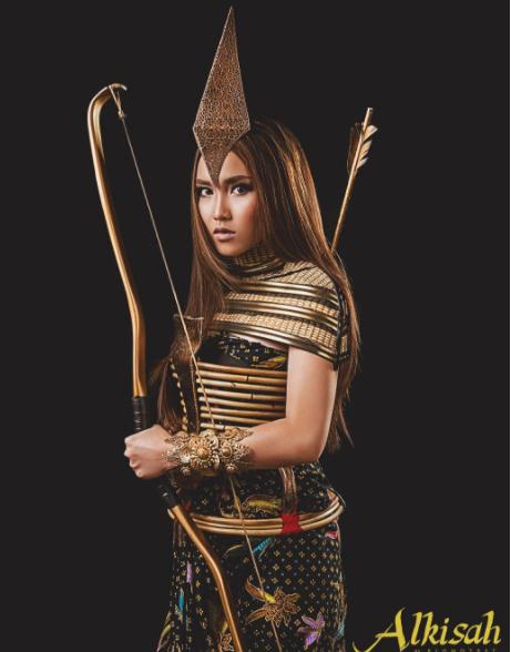 Mengenakan busana tradisional lengkap dengan senjata berupa panah, Ayu Ting Ting memerankan tokoh Srikandi dalam pemotretan ini.