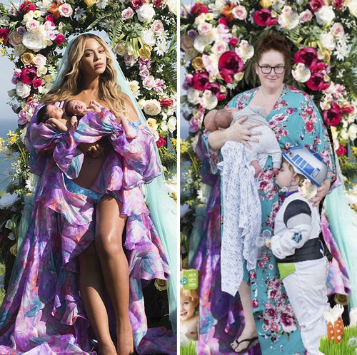 Para netizen ini meniru Beyonce yang terlihat bak ratu dalam photoshoot dengan anak kembarnya.