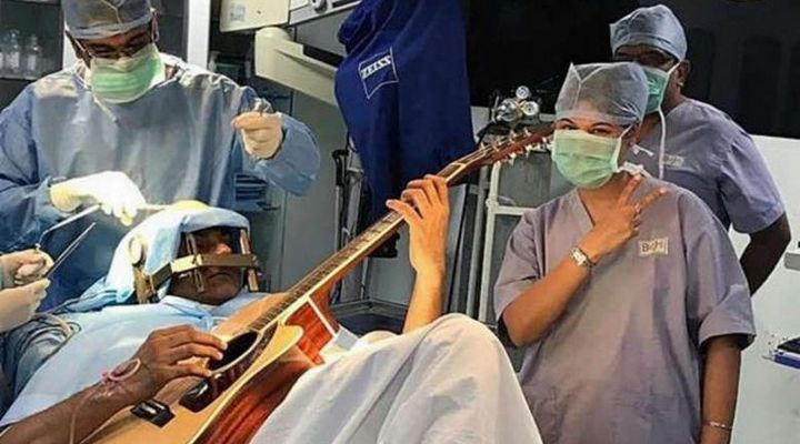 Aksi memainkan gitar sembari dioperasi merupakan bagian dari upaya terapi penyembuhan yang disebut dengan "distonia musisi".