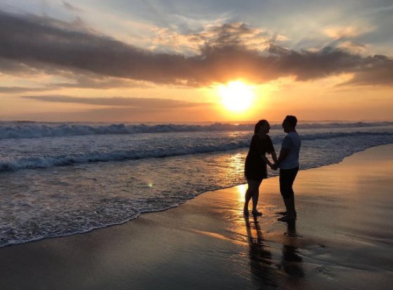 Layaknya turis Bali pada umumnya, sunset menjadi pemandangan paling dinanti oleh Mona Ratuliu dan sang suami. Mesra terus deh...