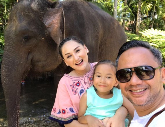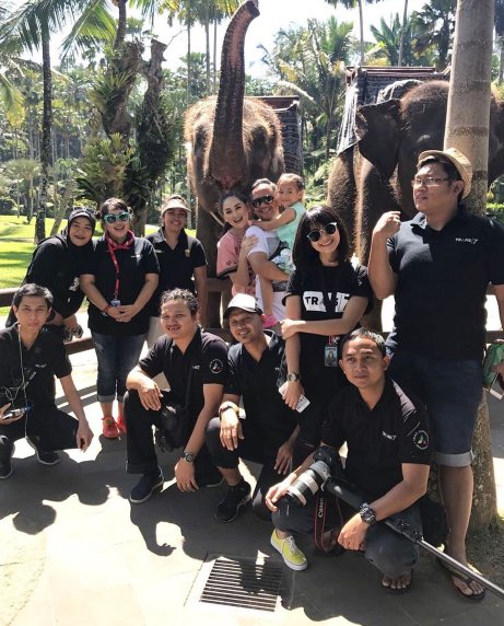 Keluarga Mona Ratuliu berpose cantik bersama gajah dan burung-burung langka.
