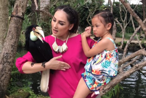 Mona Ratuliu mengajak sang putri Syanala Kania Salsabila untuk mengunjungi tempat wisata yang berisi burung-burung lucu nan langka.