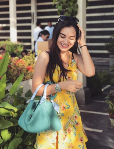 Sementara itu sambil mengenakan dress berwarna kuning, Irish Bella berpose cantik di kawasan Sundara Bali.