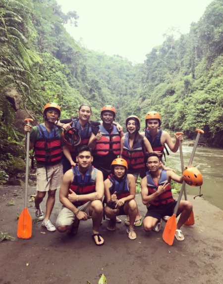 Begini kebersamaan mereka ketika selesai mau berangkat rafting. Pengalaman pertama Irish Bella lho!