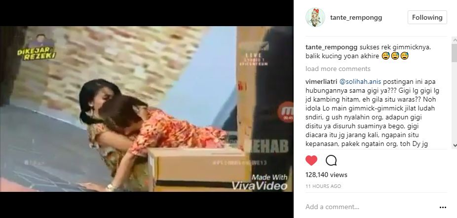Sambil mendorong koper berwarna oranye, Ayu terus berjalan menuju ke arah Zaskia Gotik, Raffi Ahmad dan Ruben Onsu. "Penonton. Ini TKI sukses. Bentuk kayak begini kayak tukang gado-gado," sindir Zaskia Gotik.