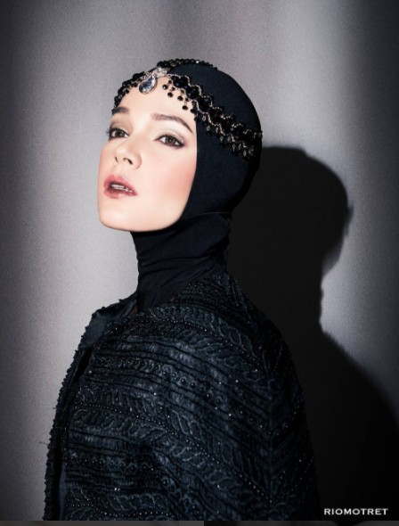 Melly Goeslaw mengenakan headpiece rancanagan Rinaldi Yunardi yang unik abis!