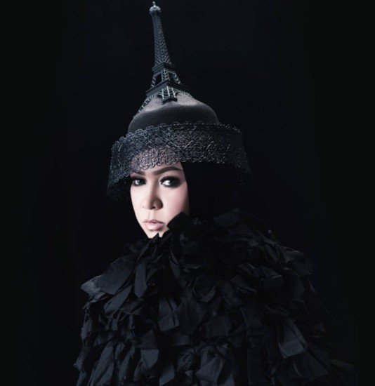 Mengenakan headpiece unik berbentuk Menara Eiffell rancangan Rinaldy Yunardi, Melly Goeslaw berpose sendu dalam riasan mata gotik.