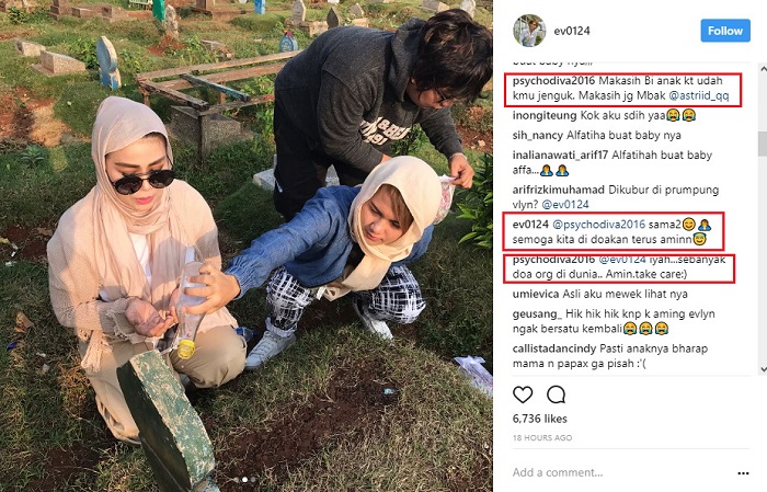 Melihat komentar itu, Evelyn pun berharap ia dan Aming dapat terus mendoakan mendiang anak mereka. "@psychodiva2016 sama2 semoga kita di doakan terus aminn," ujar Evelyn. "@ev0124 iyah...sebanyak doa org di dunia.. Amin.take care:)," timpal Aming.