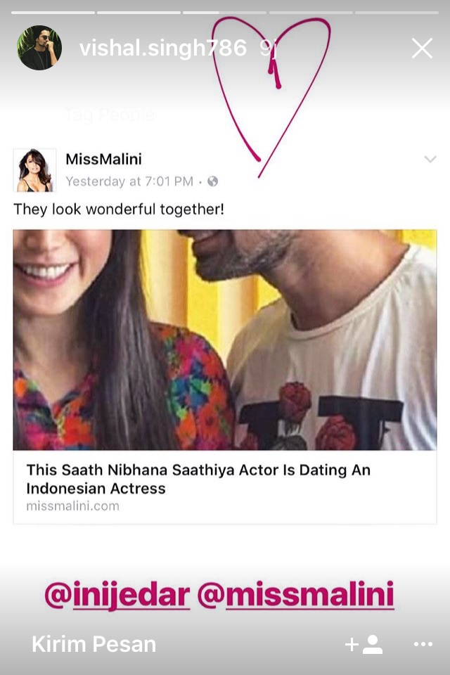 Seolah ingin mempertegas hubungan keduanya, Vishal Singh membagikan cuplikan berita tentang dirinya dan Jedar yang telah berembus di media India. Bahkan, Vishal Singh juga menyertakan gambar hati dalam postingan yang dibagikan melalui Instagram Story miliknya.