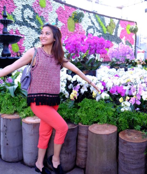 Sebagai seorang ibu hamil, pemandangan yang alami tentu baik untuk janin jadi Acha pilih jalan-jalan ke kebun bunga seperti ini.