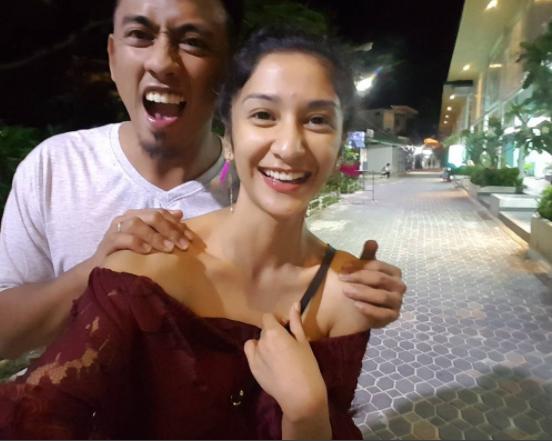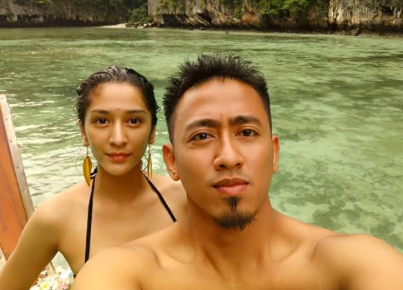 Kompak! Fanny Ghassani dan sang suami sama-sama 'pamer' dada di pulau ini.
