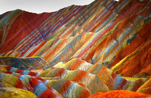 Provinsi Gansu di China diberkati dengan pemandangan alam yang cantik. Pegunungan yang terletak di Grand Canyon, yang merupakan daerah seluas 400square km dari puncak dan lembah dramatis. Batuannya berwarna-warni dan warna yang tidak biasa adalah hasil deposit mineral selama lebih dari 24 juta tahun di atas batu pasir merah. Tempat ini memberikan pemandangan spektakuler bebatuan dan tidak diragukan lagi tempat yang layak untuk dikunjungi sekali dalam seumur hidup. Batuannya sangat indah dilihat dan tempat yang damai untuk menikmati matahari terbenam dengan alam.
