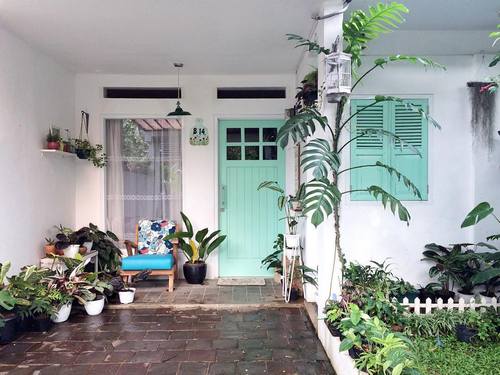 Coba ganti cat rumah mungilmu dengan kombinasi warna putih dan tosca. Atmosfer rumahmu bakal terasa segar dan memberi kesan vintage seperti ini.